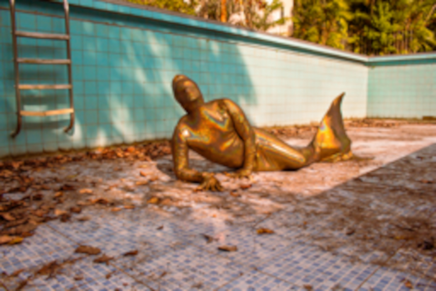 A artista visual Rafa Bqueer, vestida com uma roupa zentai de sereia, incorpora uma criatura híbrida entre humano e animal, dialogando com o imaginário amazônico da Iara. Sua performance faz uma crítica ao assoreamento dos rios da Amazônia e ao desequilíbrio climático.